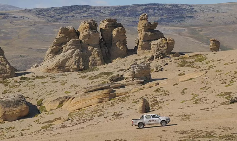 La excursión comienza con la recogida desde los Hoteles (este servicio puede tomar alrededor de 15 minutos) para luego completar un recorrido de aproximadamente 15 kilómetros hasta la entrada del Cerro Huyliche, ascendiendo 350 metros de desnivel hasta llegar a la cima. Ya a una altura de 990 metros sobre el nivel del mar, donde están con los Trekkers, guías y choferes para iniciar un recorrido de 1 ½ hora sobre la línea de los cerros situados detrás del pueblo. Esta travesía va por paisajes de estepa, alcanzando alturas de hasta 1050 metros sobre el nivel del mar.
